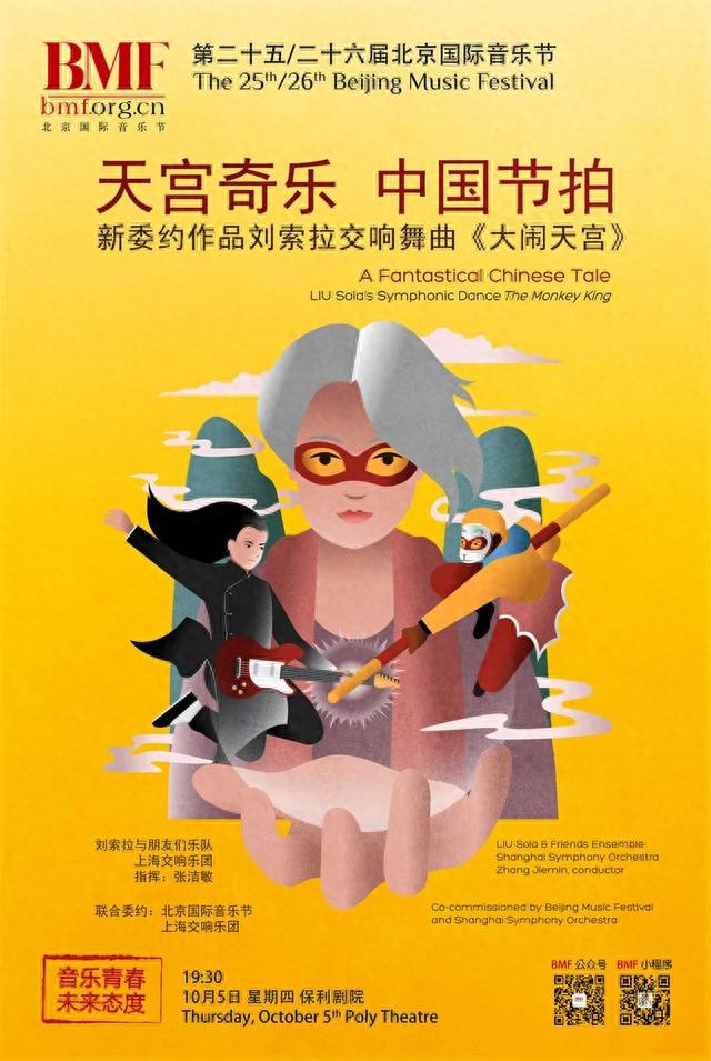 10月5日晚,刘索拉与朋友们将在双节期间为观众带来交响舞曲《大闹天宫》,致敬中国动画跨越一个世纪的辉煌历史,致敬中国经典文化作品,并举行戏乐游音亲子日,同大朋友、小朋友感受齐天大圣的神通广大,共同庆祝中国动画百年。