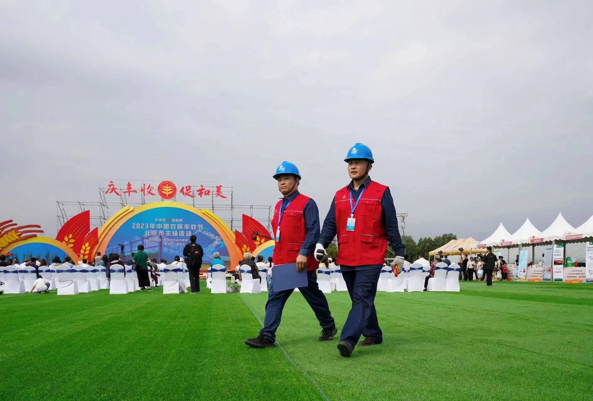 9月23日第六届北京市中国农民丰收节展演现场,丰台公司保障人员对现场电力设备使用情况进行巡视。