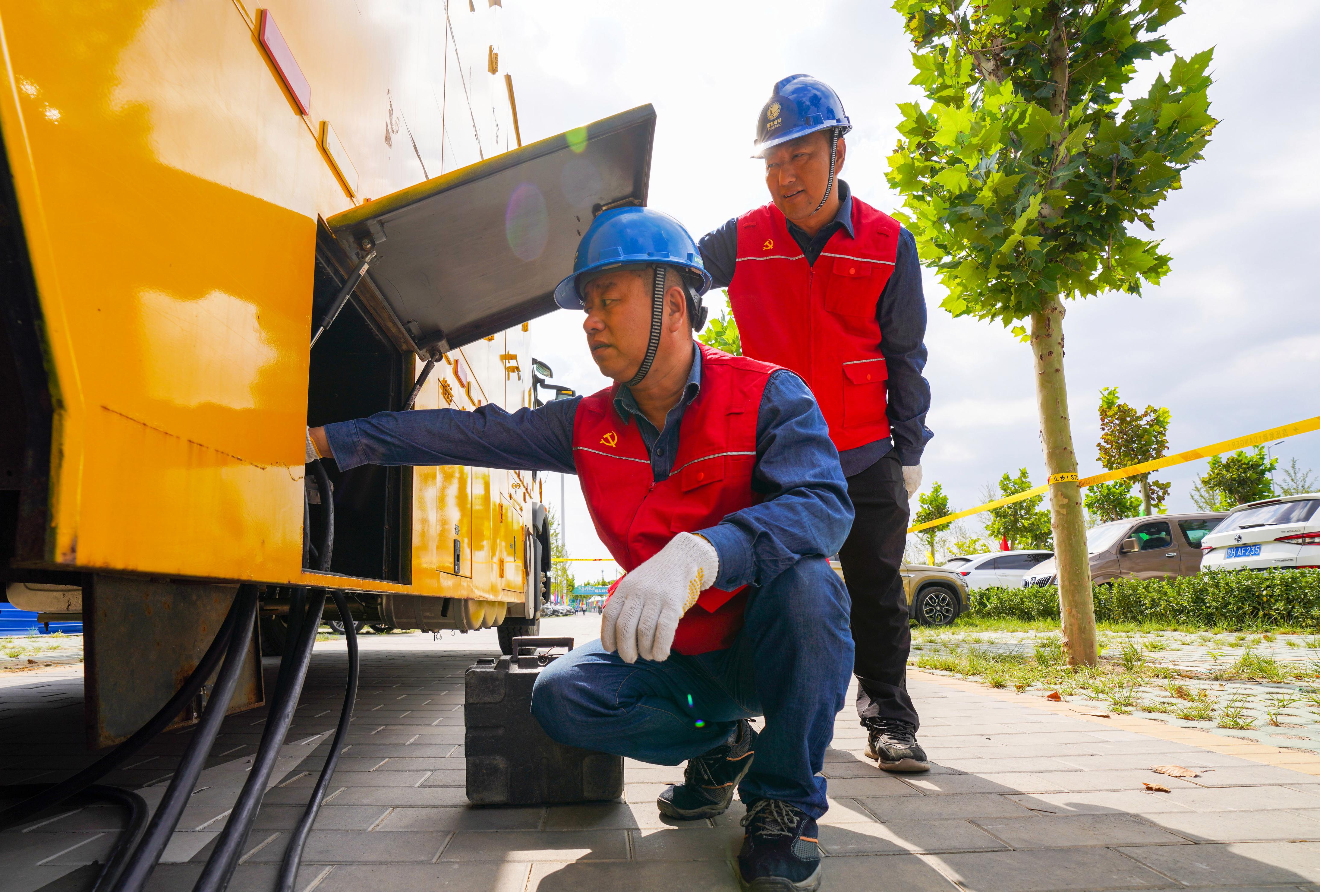9月23日,丰台供电公司保障人员在新发地农博会现场对发电车进行检查。