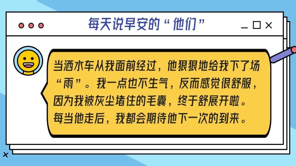 有时,在早上6点,我就能见到洒水车上岗,据说他来自景蓝保洁公司,每天公司都会派3-5辆和他一样的车,循环进行2-3次洒水作业,对孙河大街小巷进行全面清洁,保障辖区空气清新,为我们营造“干净”的呼吸环境。