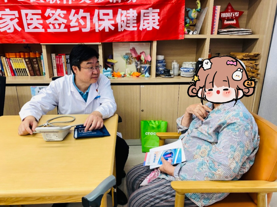 最后,家庭医生为老人们量血压、测血糖,详细询问每一位老人的身体状况,并耐心细致地为他们进行个性化的健康指导。康复科的韩云医生还贴心地为行动不便的老人进行康复训练与指导。