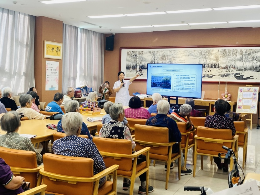 首先,医政科郭晔主任医师向老人们介绍了中心的特色科室以及居家医养和社区安宁疗护服务范围。