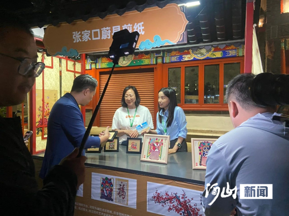 在活动现场,蔚县剪纸展位前的火爆场面引来了《河北新闻网》和《燕赵都市报》主播、记者的关注、采访,为蔚县非遗宣传推进工作起到了积极作用。