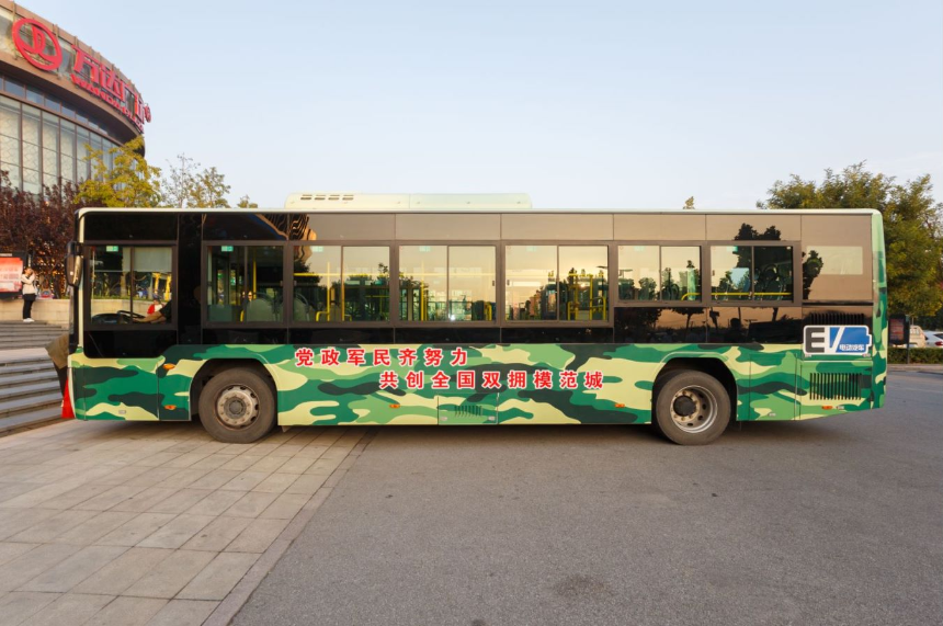 迷彩绿等军队主题元素装扮的车身,配以形象的双拥海报和双拥标语驶上街头,成为昌平区街道上一道醒目又靓丽的风景线。