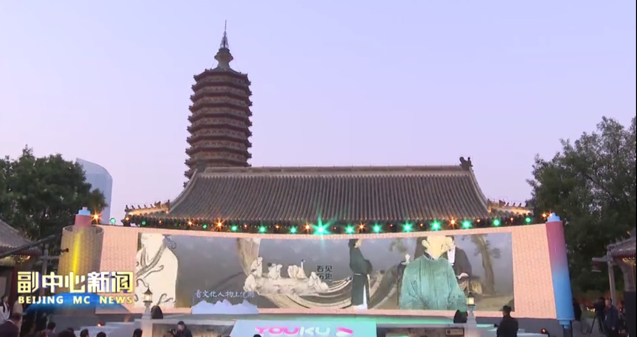 实习记者李博文:“那我身后,是今晚人文雅集雅聚通州的活动现场。圆形的嘉宾布置区设计台上可以看到台后面的三庙一塔的景区,伴随着美景文人雅士们开启今晚的论坛。”