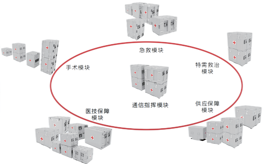 在“应急”领域,公司聚焦“智能化、模块化、高机动、多功能”的国家应急医学救援体系,自主研制了“急救一体机”“箱组式医疗救治系统”“食品和水质快速检验箱组”“智能化可移动式多功能方舱医院”“智能化帐篷医院”等系列产品组成的“五大核心拳头产品”,以及“智能化医疗救治箱组”“便携式急救设备”“智能化卫生监督检测箱组”组成的“三型应急医疗救治装备”,形成了应急医学救援装备的“家族谱系”。