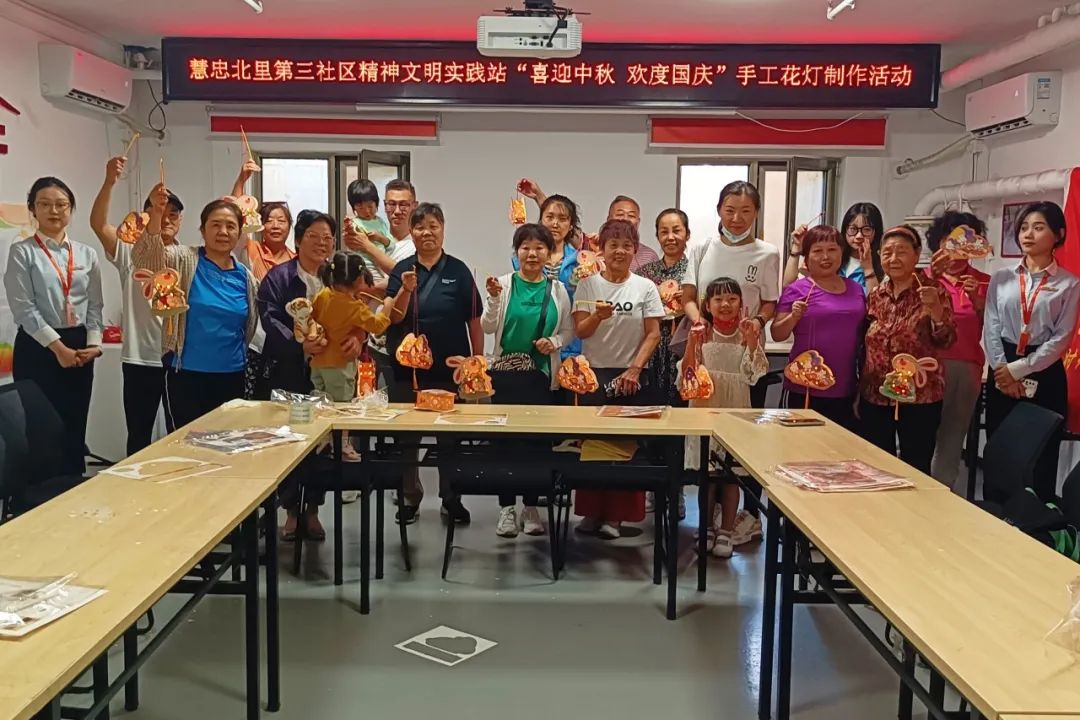 慧忠北里第三社区开展手工花灯制作活动,月兔灯笼让现场透着浓浓的节日气息,照亮居民的美好生活。