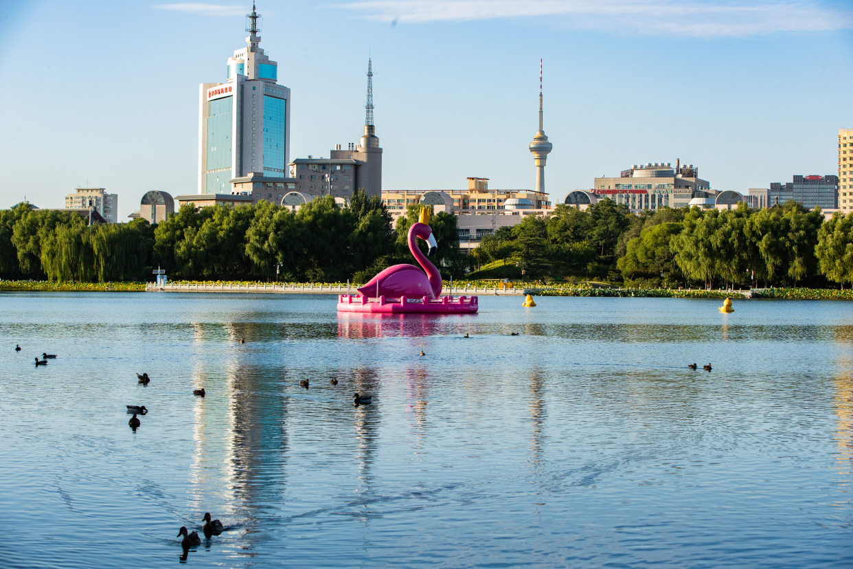 随着中秋国庆临近,在城市的大街小巷里,各式各样花卉草木组合而成的立体造型、花坛花带陆续布置到位,在莲花池公园湖面之上,70艘火烈鸟、鸳鸯和海豚造型的游船也整“妆”待发,节日的氛围愈发浓厚。