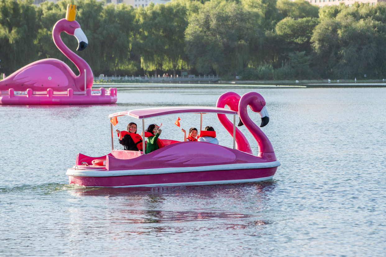 记者在现场看到,两节期间,丰台区文旅集团还为乘坐游船的游客准备了手摇国旗、国旗贴纸、宇航兔挂坠等神秘小礼物。据悉,自8月底“火烈鸟”号游船开航后吸引了大量游客前来打卡,“本来是为了观赏满池盛放的荷花而来,到这里一眼就被湖中央那个大大的火烈鸟浮台吸引,想趁着国庆放假带孩子好好过来体验一下。”在湖边游玩的王女士告诉记者。