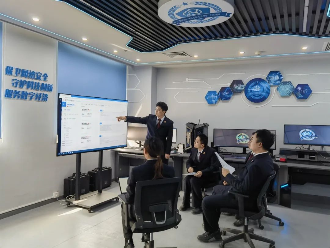 图为海淀区检察院办案人员借助电子数据审查室开展专业化办案