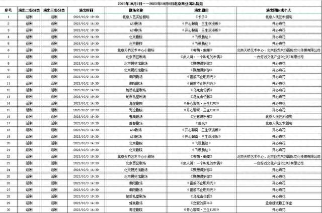 2023年10月2日—10月8日北京商业演出信息新鲜“出炉”!