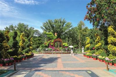 国家植物园北园是本届菊花展的主展区。在科普馆西侧,近8000平方米的展区内,数万盆各色小菊组成了不同的色带、色块,形成缤纷花海。展区中心区域的主题图案是中国结,取名“菊舞锦缬”,寓意神州大地繁花似锦,祖国繁荣昌盛。展区东侧用塔菊、骆驼造型菊、大立菊等菊艺为主组成“丝路花语”景点,以及用鼠尾草、龙牙草、狼尾草等组成迷你儿童花园。核心展区南侧是“凤鸣朝阳”立体花坛,与周围的龙菊交相辉映,象征了“国泰民安,吉祥如意”的美好寓意。立体花坛南端的容器园内,集中展示了‘秋妆红颜’‘粉面朱唇’‘秋染丹霞’等近年来国家植物园自己选育的9个小菊新品种。同时还展示了首次引进的‘绚秋’系列‘绚秋糖果’‘绚秋流光’等7个新优品种小菊。