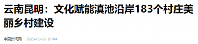 中国新闻网9月26日发表文章《云南昆明:文化赋能滇池沿岸183个村庄美丽乡村建设》,关注昆明市对滇池沿岸183个村庄进行改造提升,以文化赋能美丽乡村建设,让滇池沿岸成为生态旅游目的地。