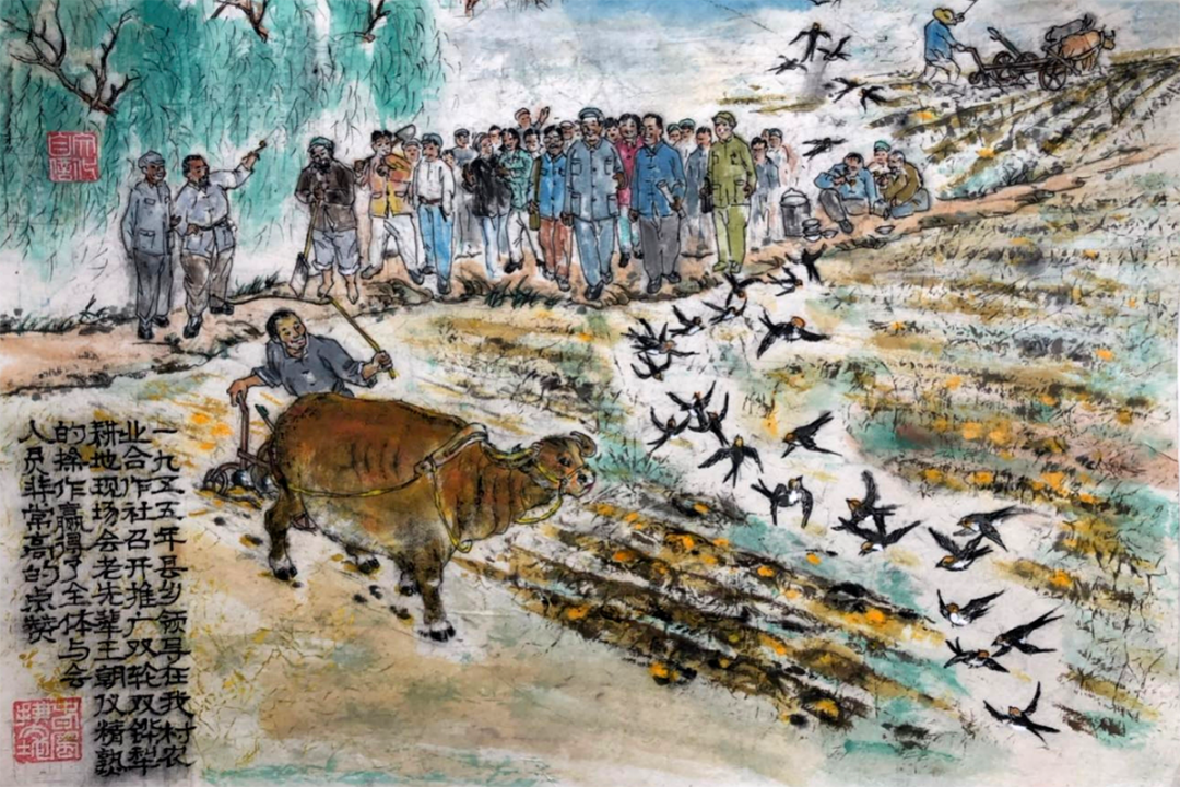 1955年,双轮双铧犁在顺义全县推广。双轮双铧犁使用推广现场会在望泉寺村西的“沙圪垯”举行,由望泉寺村村民王朝仪示范操作。从小在家乡的土地里摸爬滚打的他,一手执鞭、一手熟练地调整着犁铧的角度,使犁地质量和效率都得到很大提高。1958年,大田园田化耕种方式应运而生。在大田里调梗成畦的现场示范会在望泉寺村召开,王朝仪凭借多年经验,驾驭着一盘犁杖一头牛,得心应手,也是从那时起望泉寺村西的耕地连成一片,被称为“万亩方”。