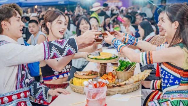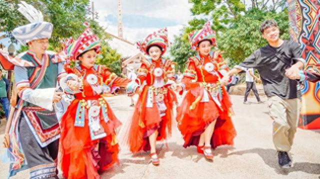 在这里,身着民族盛装的阿哥阿妹带领游客品尝哈尼族传承千年的古老宴席;被杨丽萍誉为“从地里长出来的舞者”罗罗拔四,献上神秘原始的彝族非遗舞蹈艺术——“跳菜”和少数民族酒歌“打跳”,带领游客沉浸式体验少数民族“吃席”的快乐。享誉世界的国家级非物质文化遗产——传统花灯,也从“中华彩灯艺术之乡”四川自贡奔赴而来。游客可以参与长安飞花令、猜灯谜等活动。另外,“经典红歌+篝火打跳”组合的《红歌飞舞篝火狂欢》、云南山歌创意串烧《七彩民族风》《国庆狂欢大巡游》《幻彩滇池烟花秀》等大型活动轮番上演。