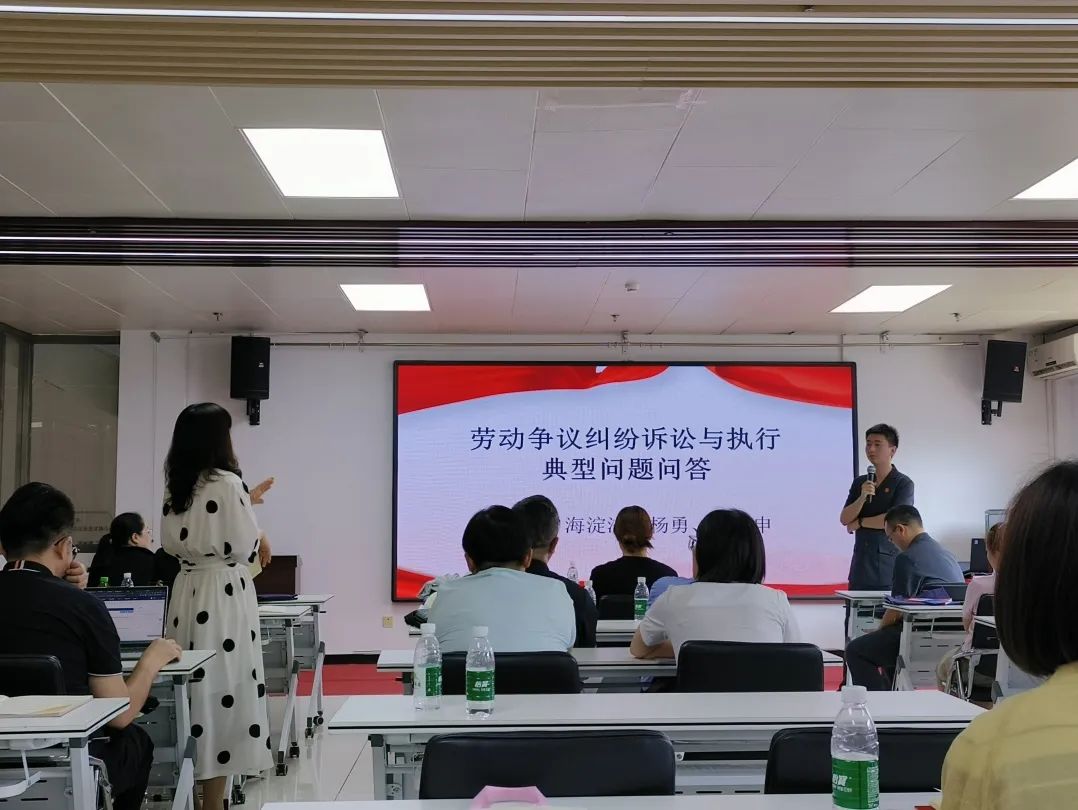 海淀区是首都经济创新高地,辖区内设立有众多大小企业。企业作为市场经济活动的主要参与者,对社会经济技术的进步发挥重要影响。为帮助企业更加深入了解经营中的涉劳动争议法律风险,近日,海淀法院执行局法官助理解于申、民事审判二庭法官杨永前往海淀区八里庄街道司法所开展“送法进企业,护航促发展”普法宣传活动,为八里庄街道辖区内企业就劳动争议纠纷中的法律疑难问题进行普法宣传,50余名企业代表参加此次活动。