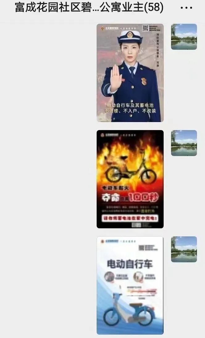 各社区充分利用公示栏、公众号、微信群等宣传阵地,向居民普及电动自行车及家庭防火安全常识,引导居民不入户充电、“飞线充电”,不购买使用改装车辆或电池,日常做好“三清三关”,让消防安全知识深入人心,营造人人关注、人人参与、人人支持的浓厚氛围。