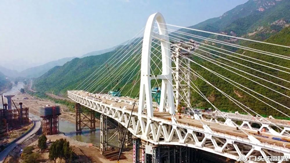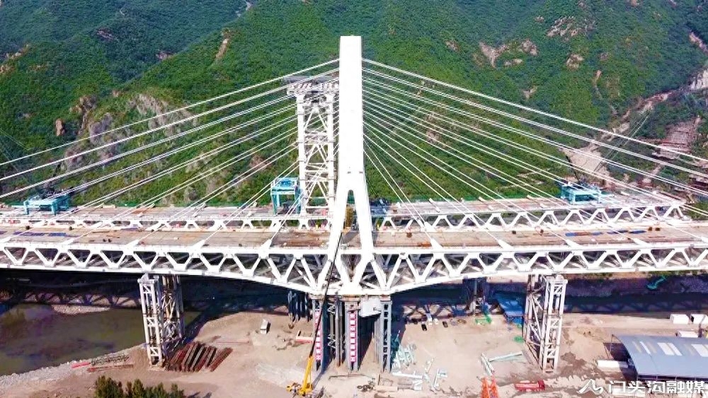目前,安家庄特大转体桥正在进行上部结构架梁施工,大桥左幅已完成钢桁梁拼装,大桥右幅即将完成最后2个节间钢桁梁拼装,整体建设进度已完成80%。后续工区将持续加强监测,严格控制钢桁梁整体线型和空间角度,按照进度计划有序推进工程建设。
