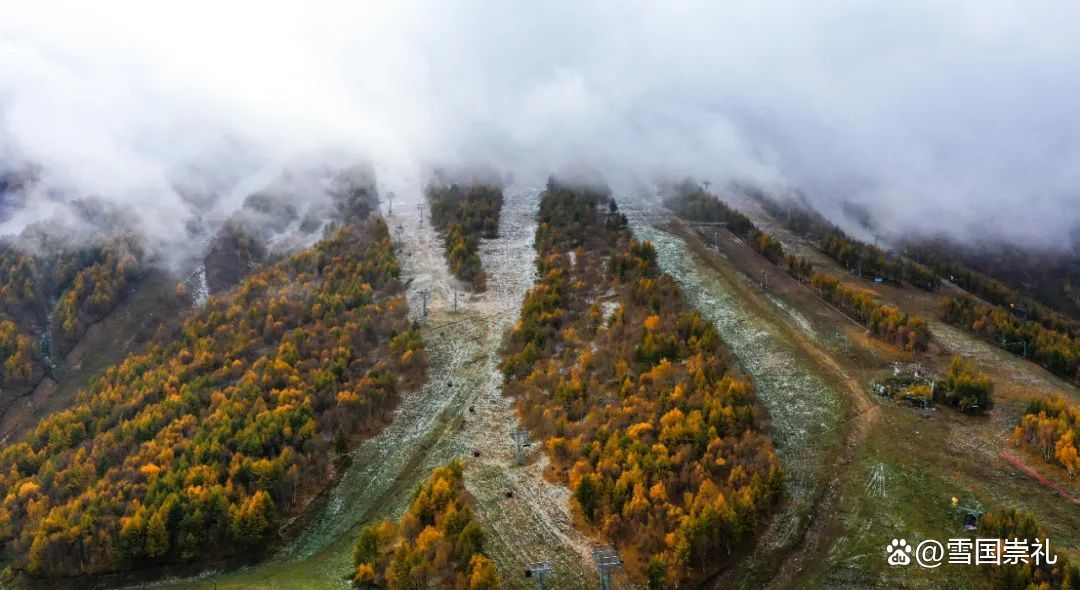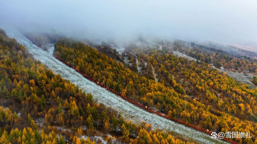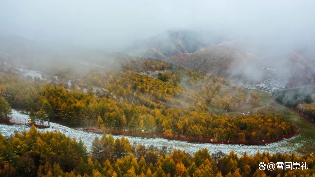 10月8日,我区翠云山、云顶、太舞、万龙等滑雪场迎来入秋首场降雪,新雪压枝、草木覆白,雪花和深秋美景交相辉映,美不胜收。