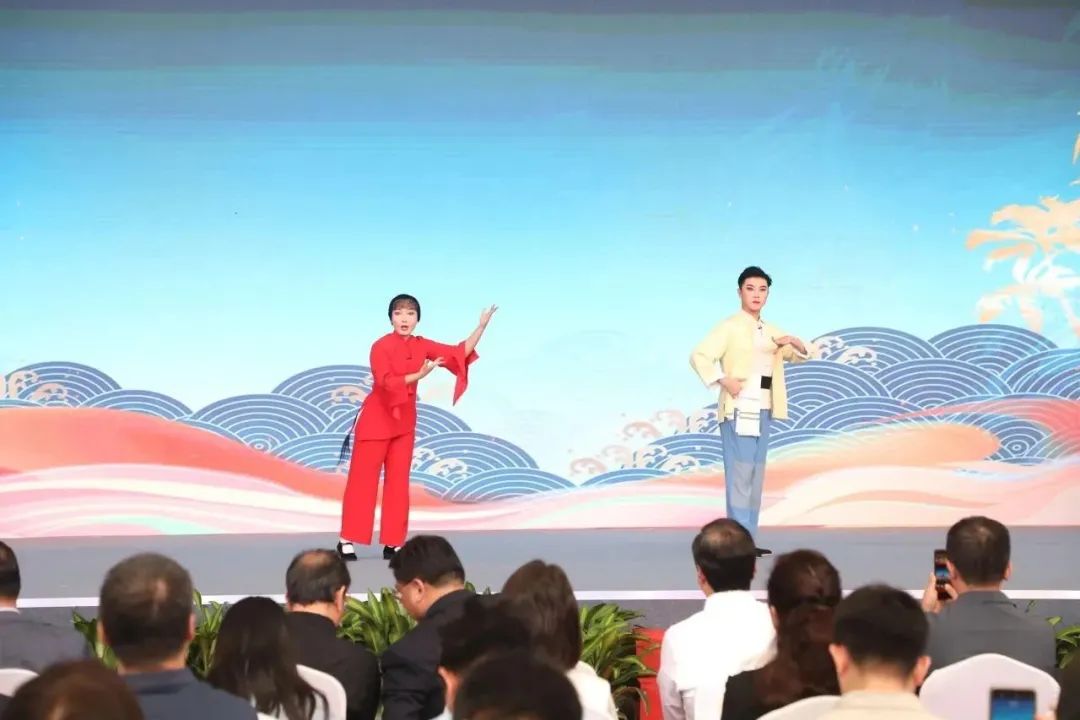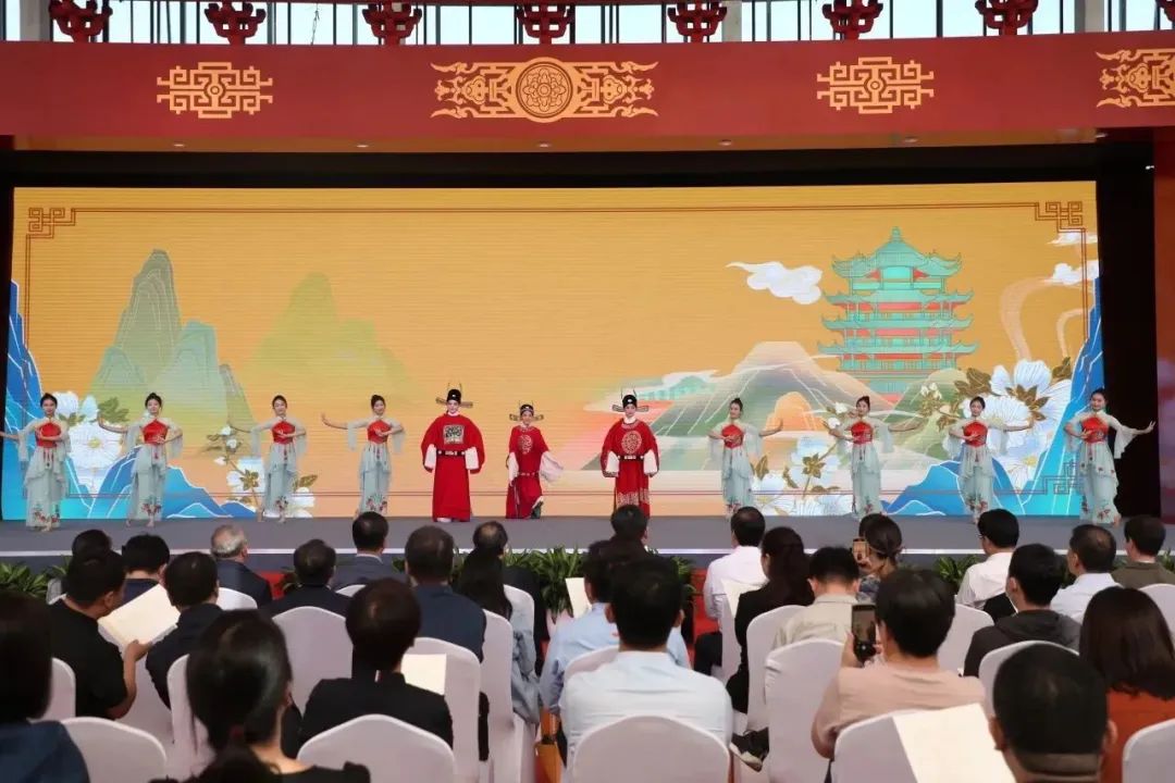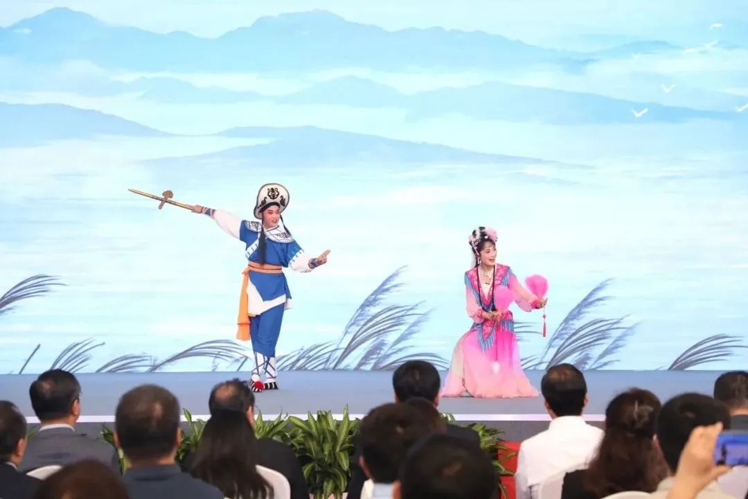 在北京园博园阳光剧场,学院表演系师生演出了青海平弦戏《绣河湟》、湖南花鼓戏《刘海砍樵》、甘肃陇剧《旌表记》、海南琼剧《红色娘子军》、浙江越剧《红楼梦》、山西蒲剧《火焰驹》、河南豫剧《花木兰》、陕西秦腔《梵王宫》、安徽黄梅戏《女驸马》等9个地方剧种的经典折子戏片段。载歌载舞的地方剧种声腔各异、特色鲜明,既有铿将有力、脍炙人口的北方剧种,也有柔美抒情、舒缓细腻的南方音韵,充分展示了戏曲百花园繁茂多姿、百花竞放的良好态势。