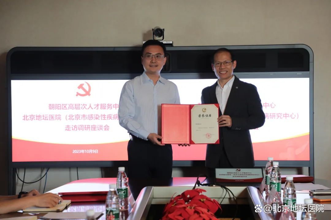 金荣华院长介绍了地坛医院的整体发展和人才工作情况,对朝阳区一直以来的大力支持表示衷心感谢。他表示,地坛医院将继续发挥专业优势,发挥国家传染病医学中心的辐射引领示范作用,为建设“五宜”新朝阳贡献力量。