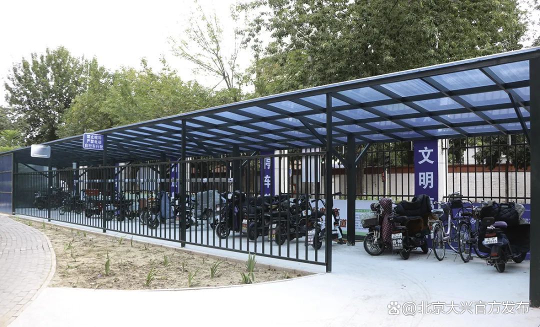 同样可喜的变化,也让边角地焕发新生,在“微更新”改造方案制定初期,社区工作人员深入走访,广泛征求居民意见,决定在东门口新建非机动车车棚,满足居民停车需求。
