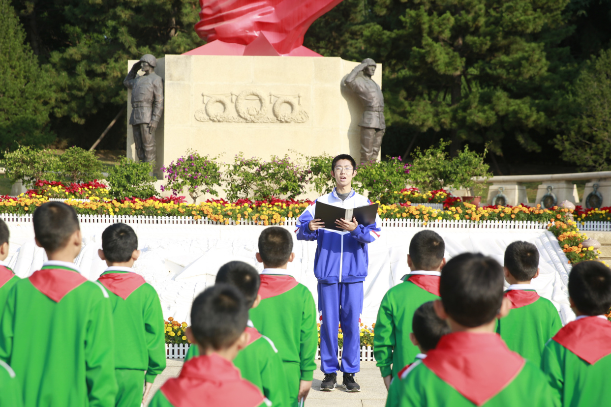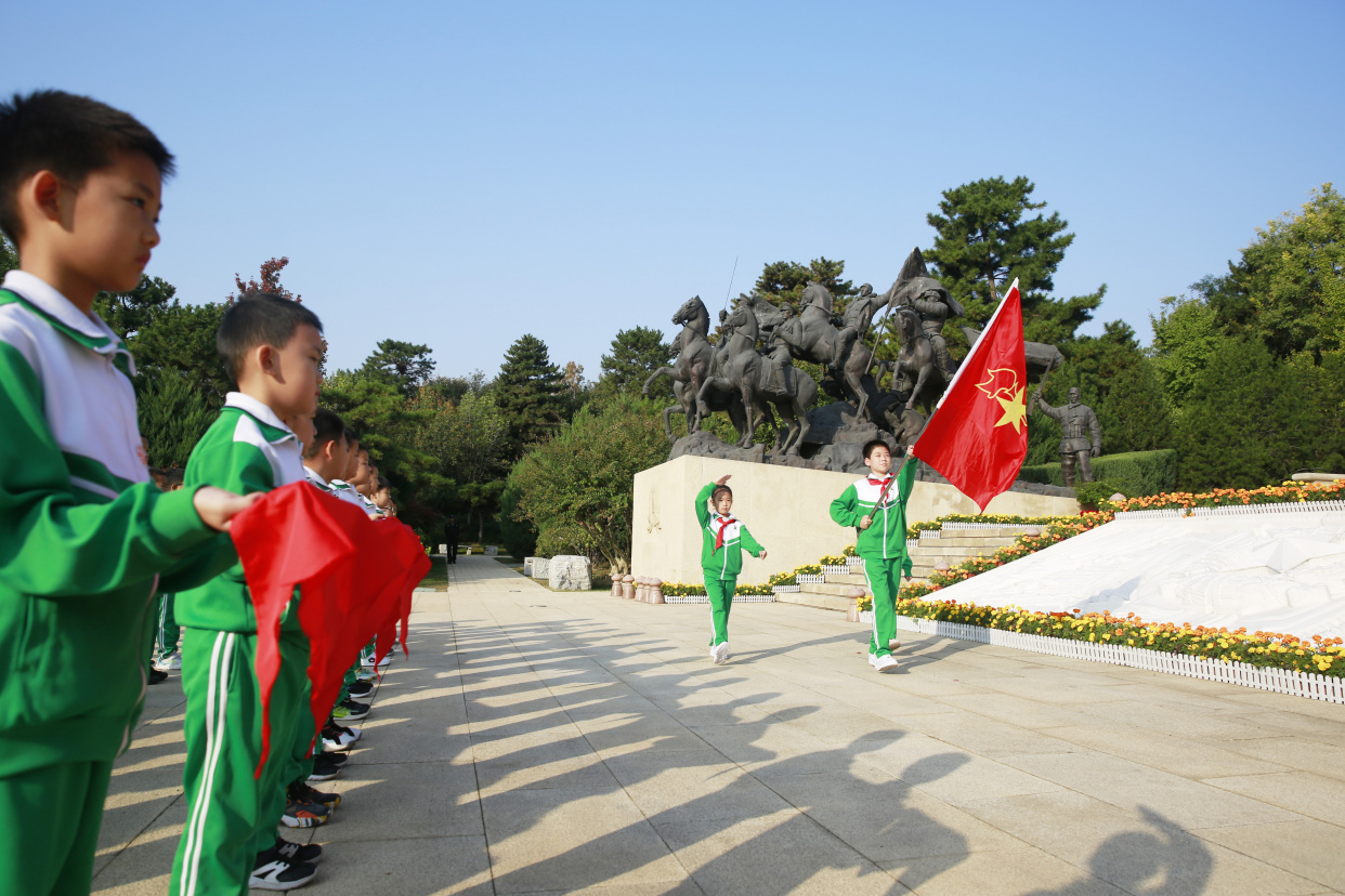 “我是中国少年先锋队队员,我在队旗下宣誓……”10月11日上午,在中国少年先锋队建队74周年纪念日即将来临之际,来自石景山先锋小学的48名二年级新队员在八宝山烈士革命公墓举行了“队旗飘飘跟党走 星星火炬逐光行”入队仪式。