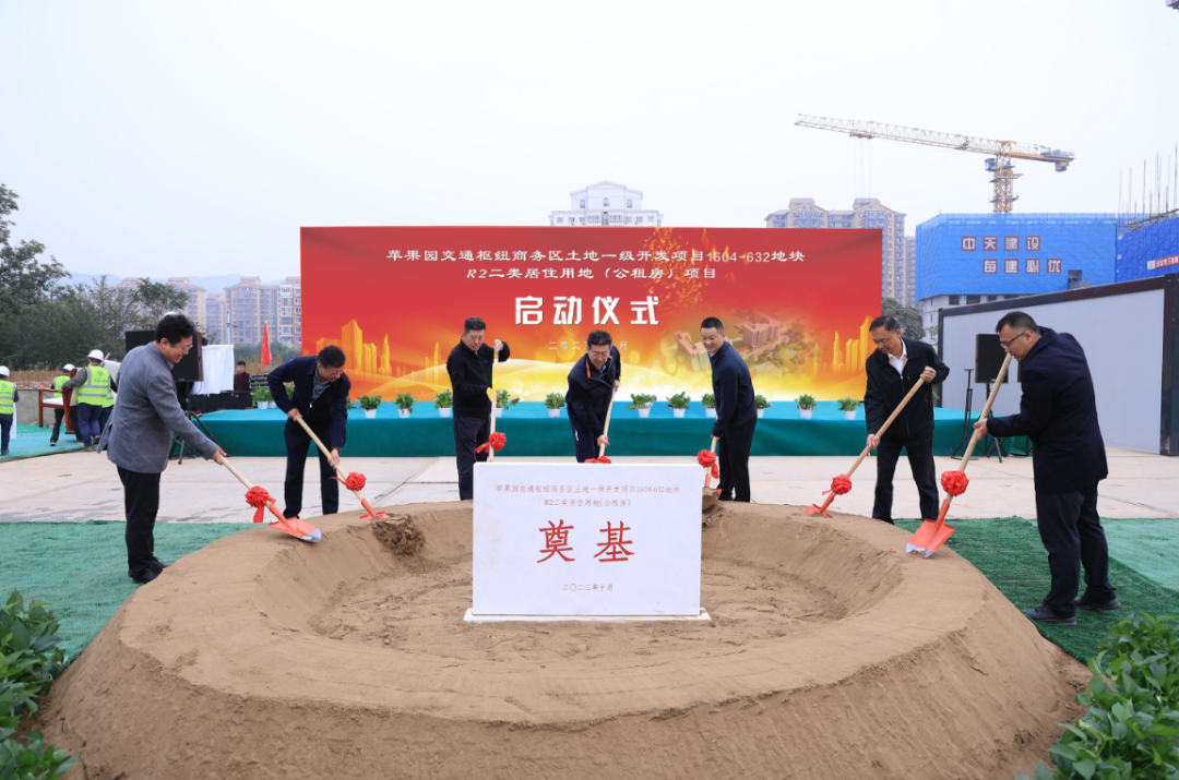 10月12日上午,石景山苹果园交通枢纽商务区土地一级开发项目1604-632地块公租房项目正式启动项目建设!