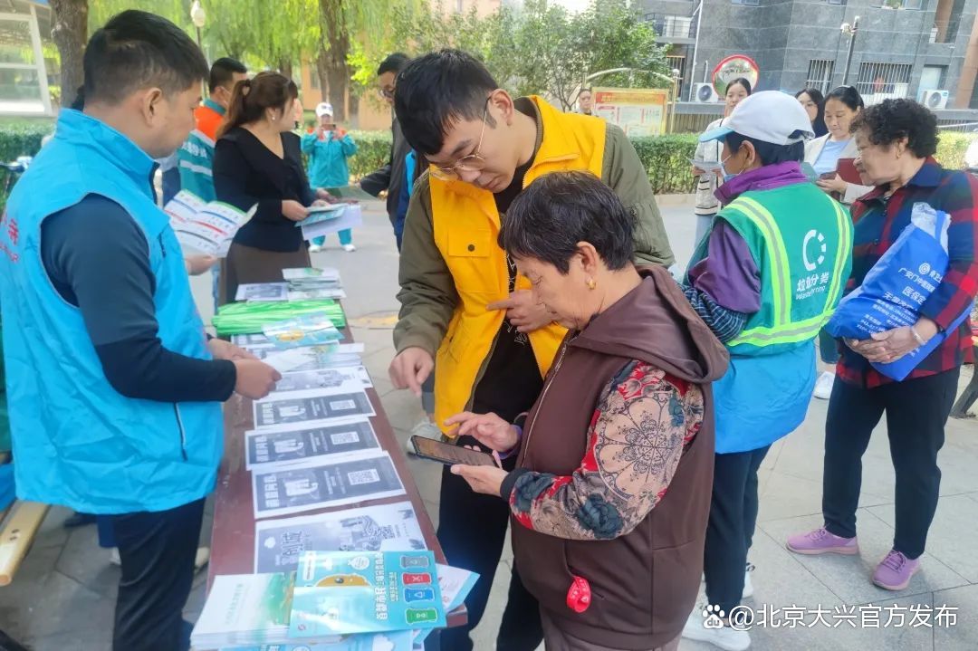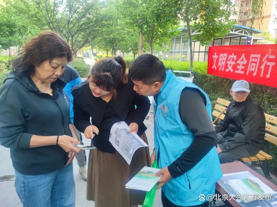 △ 首座御园二里社区新时代文明实践站开展“文明安全同行 创城从我做起”创城宣传活动。工作人员现场向居民普及文明知识,并引导居民进行创城问卷答题,同时邀请垃圾分类员发放垃圾分类宣传单并普及垃圾分类知识。