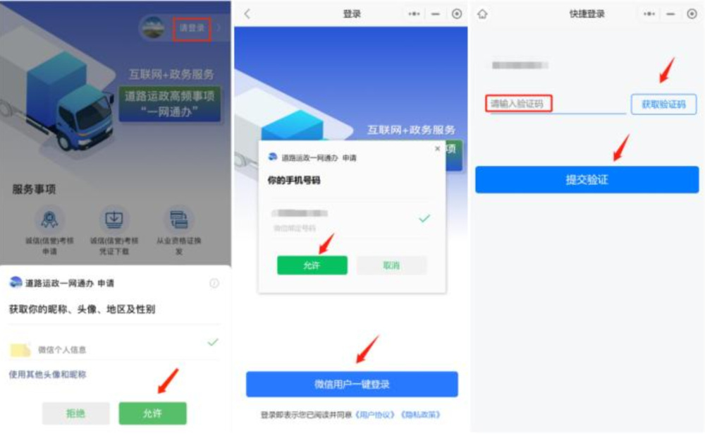图为“道路运政一网通办”微信小程序网上提交流程 截图