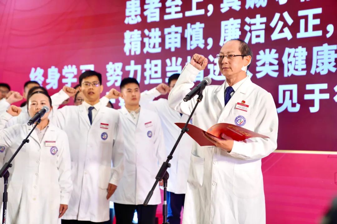 活动中,青年医师代表为大家讲述了12年不忘初心的从医故事,中青年医师和护士代表集体重温了《中国医师誓言》和《中国护士宣誓誓词》。来自金顶街社区的聂振江老人,通过亲身经历讲述了一家人与首钢医院的暖心故事,同时作为见证者和受益者为医院送上了衷心祝福。