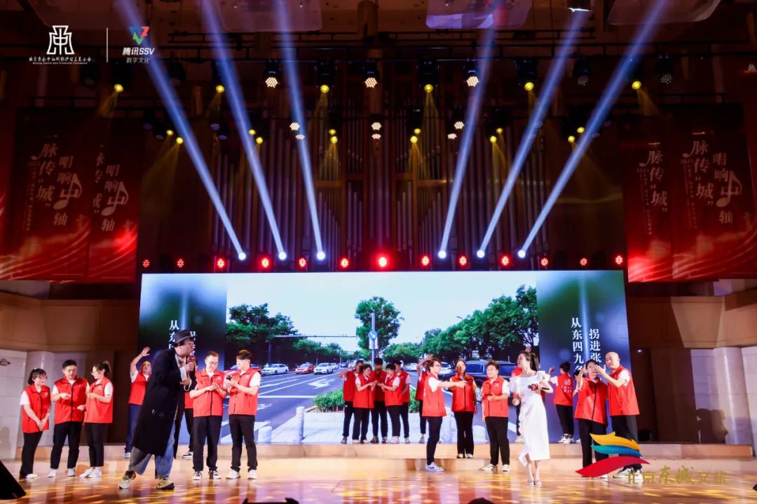 活动现场,各个合唱团队依次上台展演,他们的歌声或高亢激昂、或柔情温暖,引来了现场观众的阵阵掌声。志愿者代表演唱的《雨燕回正阳》,传递着温暖城市、守护生灵、为公益发声的热烈心声;由歌手晨希、唐子轩、刘若林以及少年儿童代表共同带来的《钟鼓楼》,唱出了钟鼓声中的人间烟火味。北京京剧院青年团优秀青年老生谭正岩演唱的歌曲《京韵中轴》,则原创性地加入了京腔京韵,生动地展现出了古都北京的气魄与底蕴。音乐人徐乐同创作并演唱的《永遇乐·瑞兽》将神兽作为创意主体,将“光明磊落”“福禄永驻”的祝福旋律,传递到人们耳边。