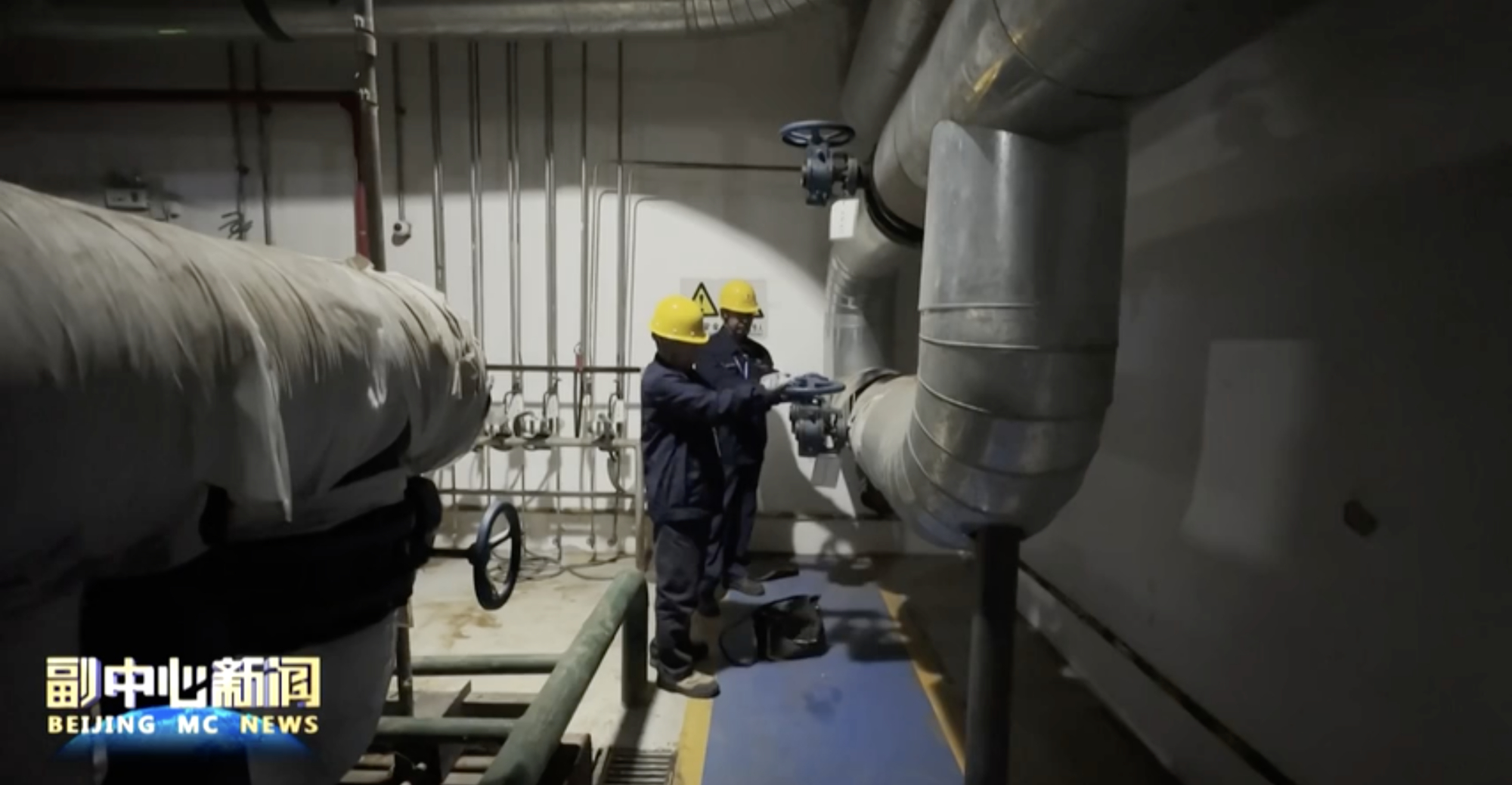 在玉桥南里热力站,京能热力通州分公司的工作人员正在对站内设备进行调试,保障试水打压工作顺利开展。因每个小区的试水时间不统一,用户需留意自家小区的灌水通知,并根据灌水时间家中留人。