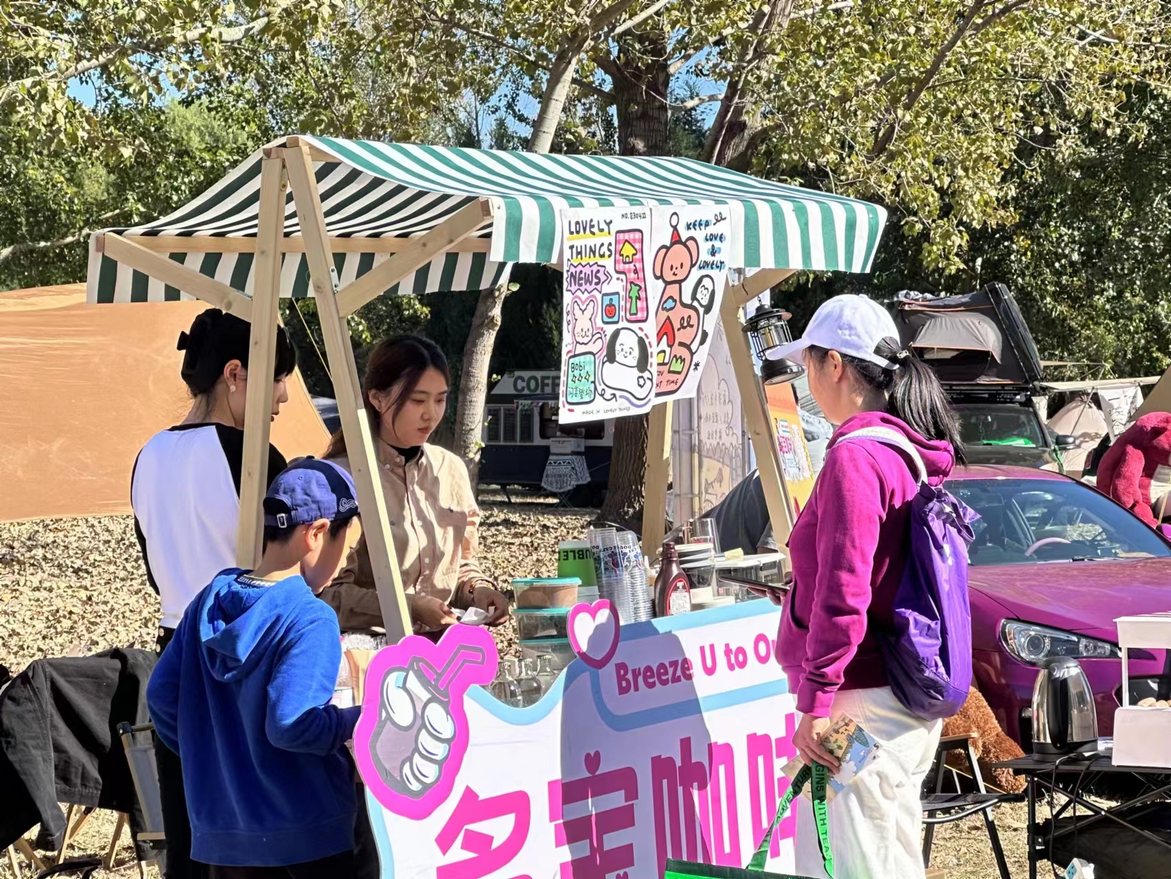 “今天和朋友们一起来园区里享受露营集市的乐趣,我们带了一些零食和水果,一边吃一边享受美丽的秋景。”园区员工刘女士满意地说。“我和孩子今天准备待到日落。”进行露营的韩先生表示,“到时候坐在随风摆动的天幕下,伴随着耳边的虫鸣欣赏满天繁星,让孩子和大自然亲密接触。”