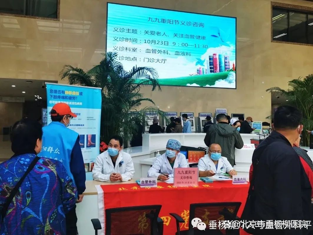 九九重阳日,浓浓敬老情。为欢庆重阳佳节,弘扬“敬老、爱老”的传统美德,进一步提高老年人健康生活品质,切实增强老年人的健康保健意识,10月23日上午,北京市垂杨柳医院血管外科、血液内科组成的志愿服务队,在医院门诊大厅开展“关爱老年人,义诊送健康”健康义诊筛查和健康宣教活动。活动现场有60余人进行问诊咨询,部分患有血管疾病、血液疾病的患者带来化验和检查结果,专家在为其现场问诊并解读报告,初步给出了病情分析结果。