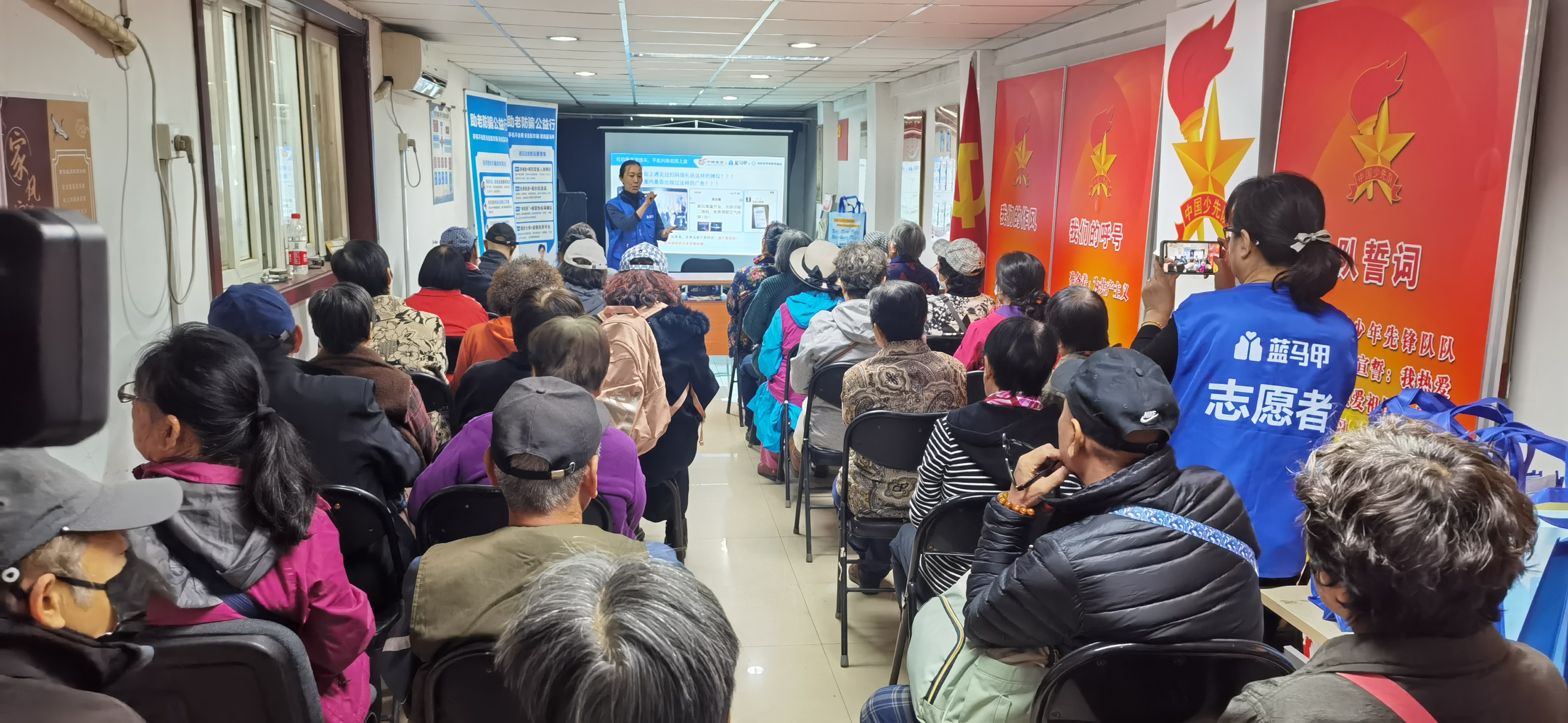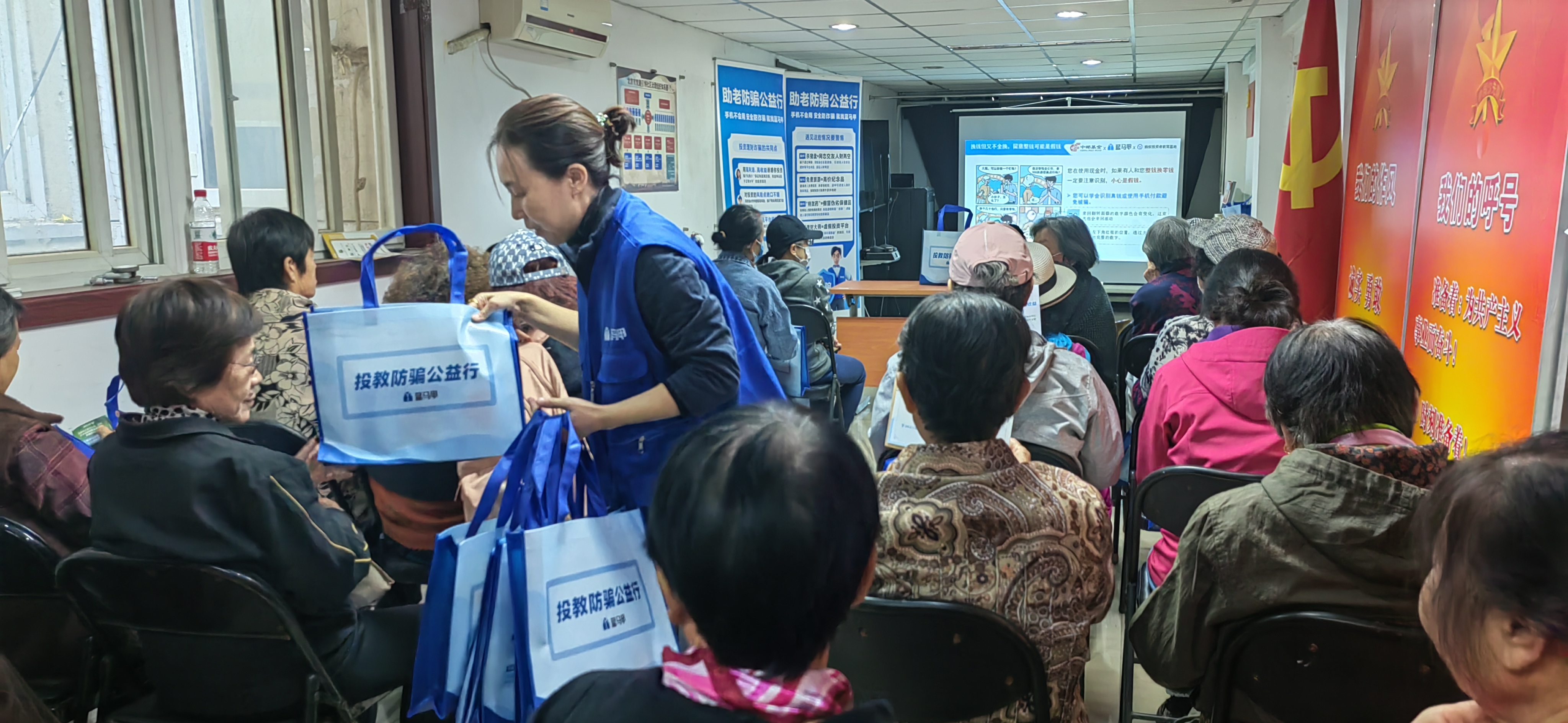 为弘扬中华民族尊老敬老爱老助老的传统美德,丰富社区老年人的精神文化生活,增强老年人防范养老、电信诈骗意识,保障群众财产安全,守护好群众的钱袋子,10月23日,在“重阳节”到来之际,长青园社区党委联合北京市东城区恒爱家庭教育服务公益中心携手组织开展“反诈伴您行,重阳寄深情”之“蓝马甲”重阳节助老防诈骗活动。