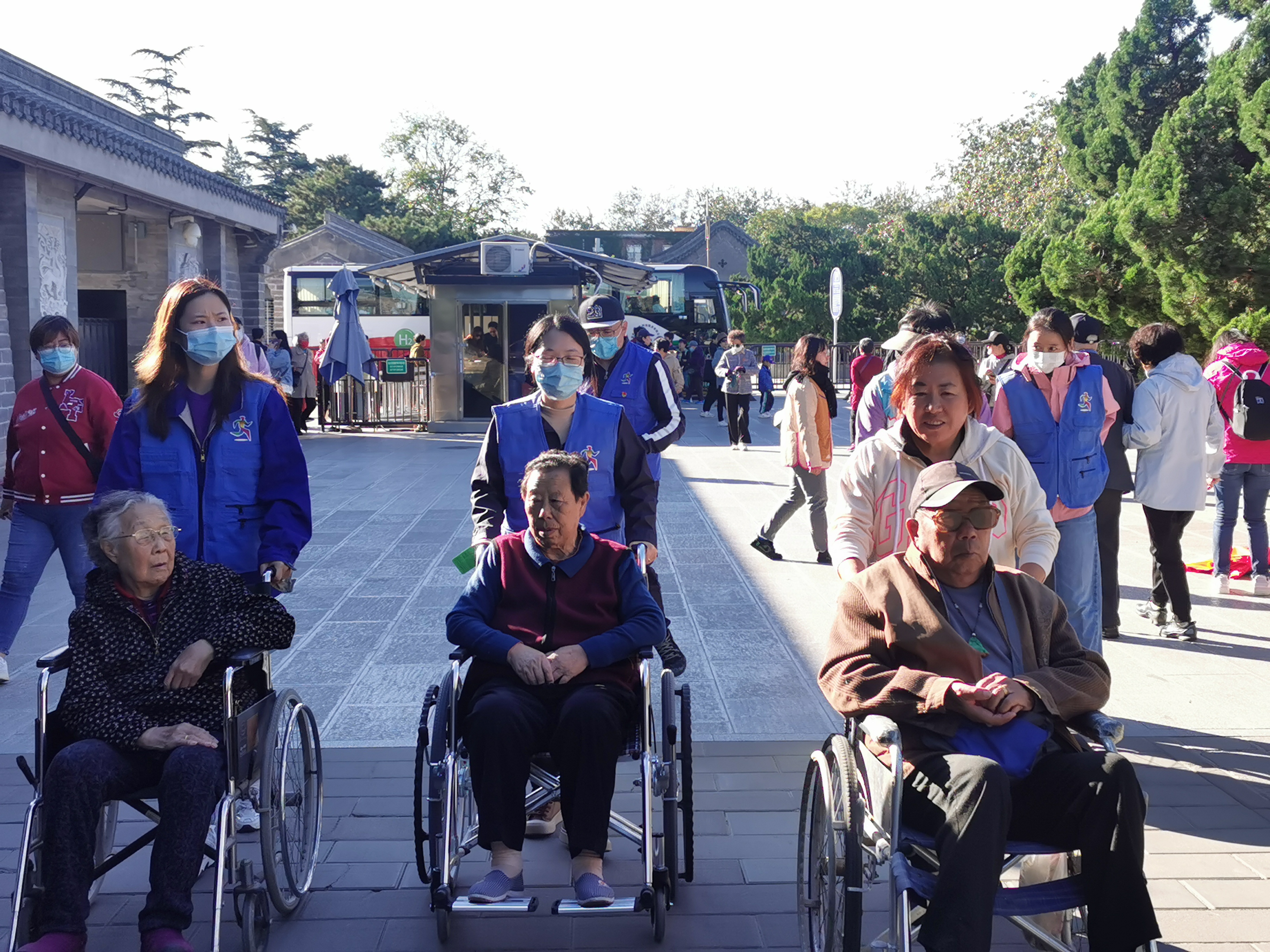 西唐社区联合辖区驻街单位方圣集团党支部和自来水公司党支部,组织辖区居民开展“情系重阳关爱老人西唐社区助老行”活动。志愿者推着轮椅带老人逛天坛公园。“您看,这花多好看。”“我好几年没来过公园了,今天真高兴。”一路上,志愿者和老人一边聊天一边赏花观景,老人们都非常开心。