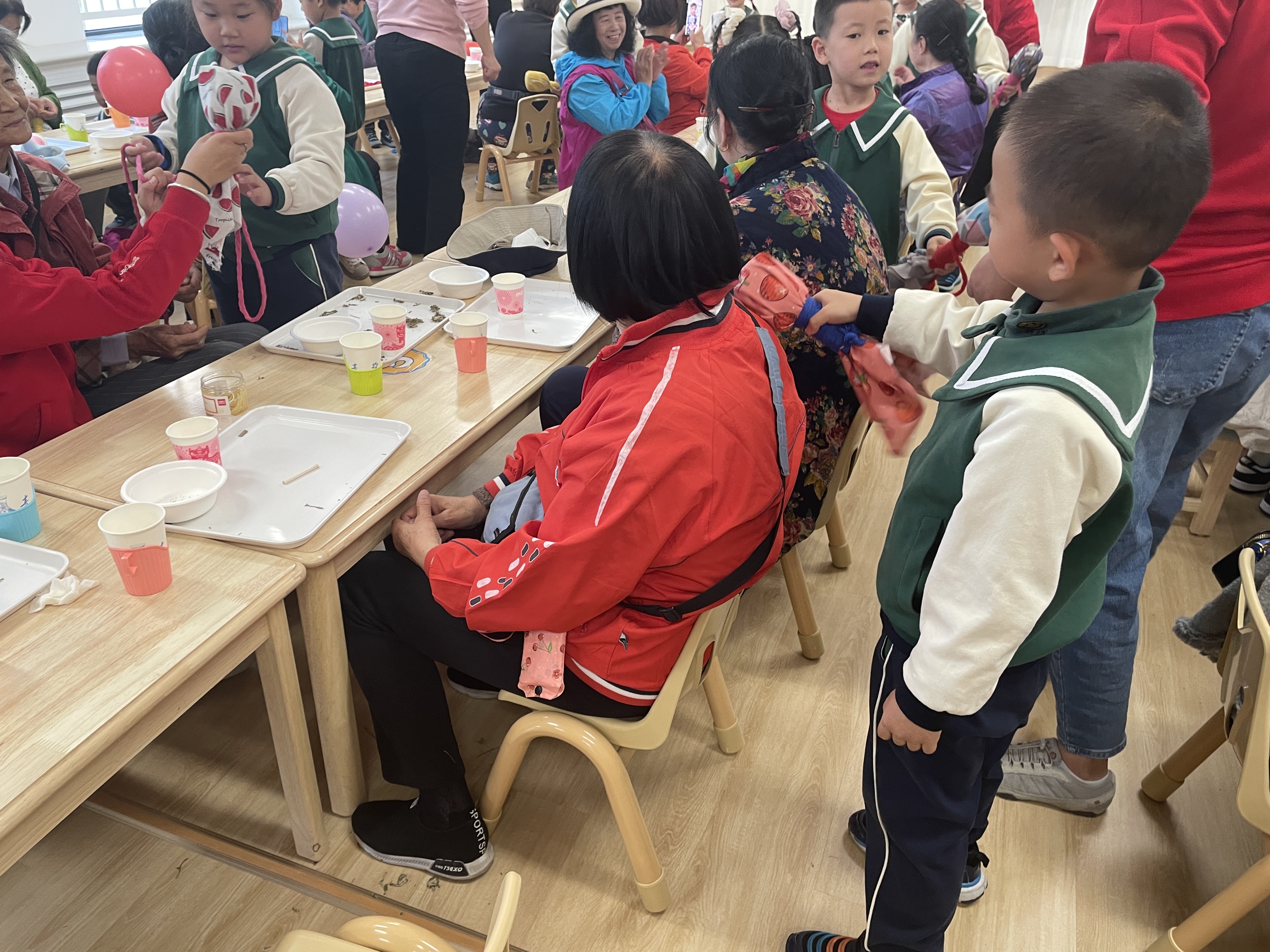 表演结束后,小朋友们和现场的爷爷奶奶们共同制作“养生捶”,现场一片其乐融融。最后孩子们还将亲手绘制的“事事如意”画作送给老人们当做节日礼物,在这个敬老、爱老、孝老的节日里送上他们的祝福。