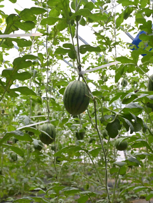 其中,航天5号西瓜(简称“航小瓜”)拥有“航天基因”,园区利用大棚培育优势,调节大棚内的温度和湿度,并通过增大昼夜温差进一步加强西瓜的甜度;采用吊秧种植,一棵藤上只有一颗瓜,让每一颗瓜都能呈现最佳的口感。