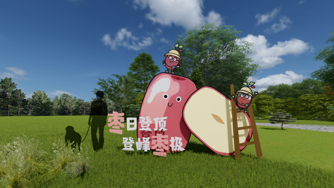 目前,园区内形象IP以及景观装置小品的设计工作已完成,预计10月份完成落地实施,届时郎枣园将新增一系列独具特色的景观艺术装置,形成新的体验打卡景点。