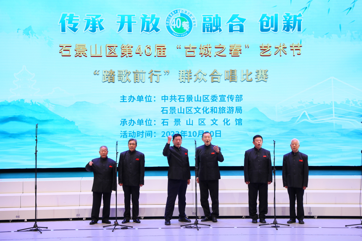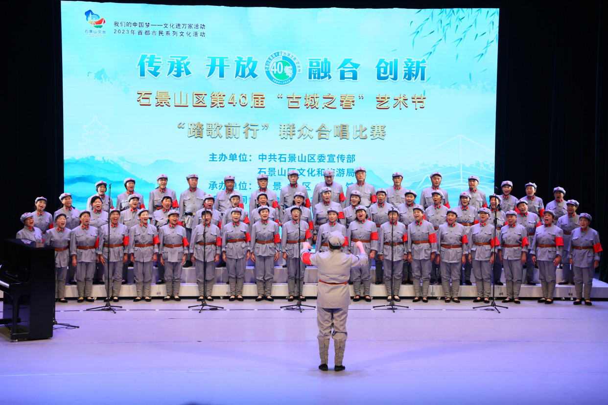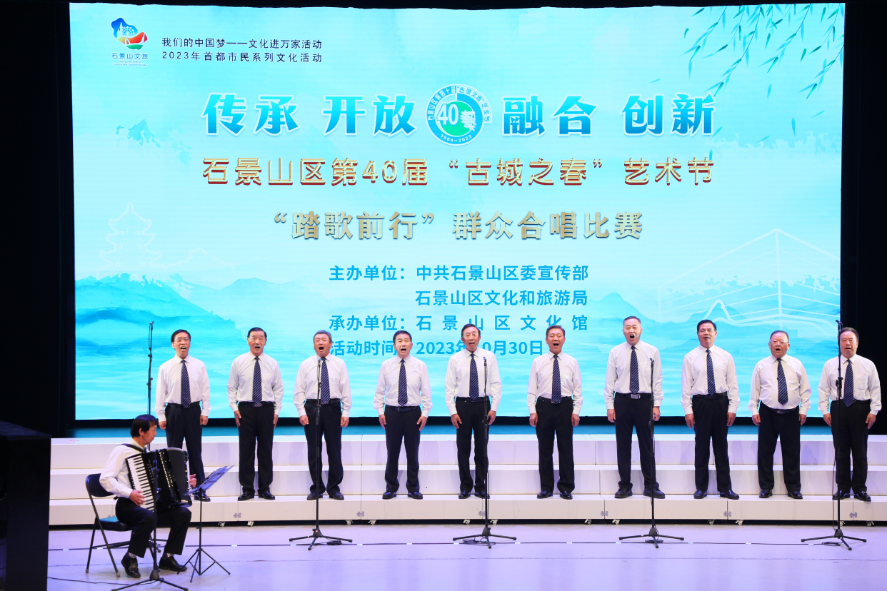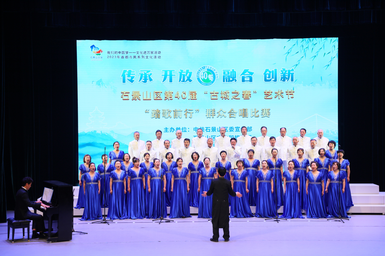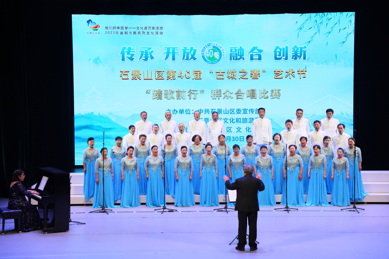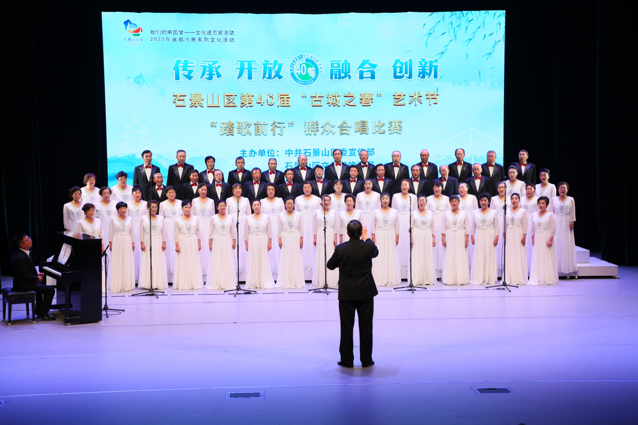 经典的歌曲唱响心中激昂,优美的旋律演绎时代篇章。10月30日,石景山区第40届“古城之春”艺术节“踏歌前行”群众合唱比赛在石景山区文化中心剧场隆重举办。全区共9个街道、机关及驻区企事业单位的28支合唱队伍参赛,近千名选手先后登台,以歌颂党、以乐抒情,掀起群众文化活动的高潮。
