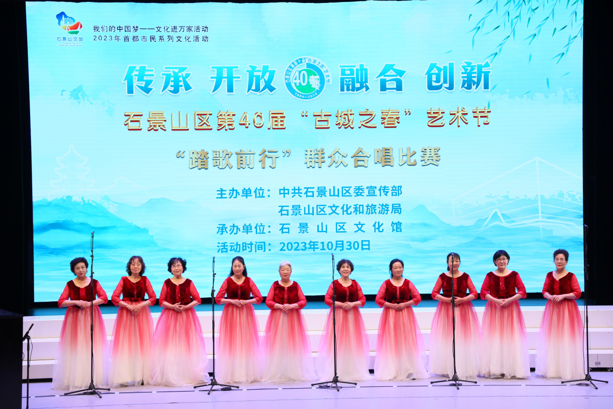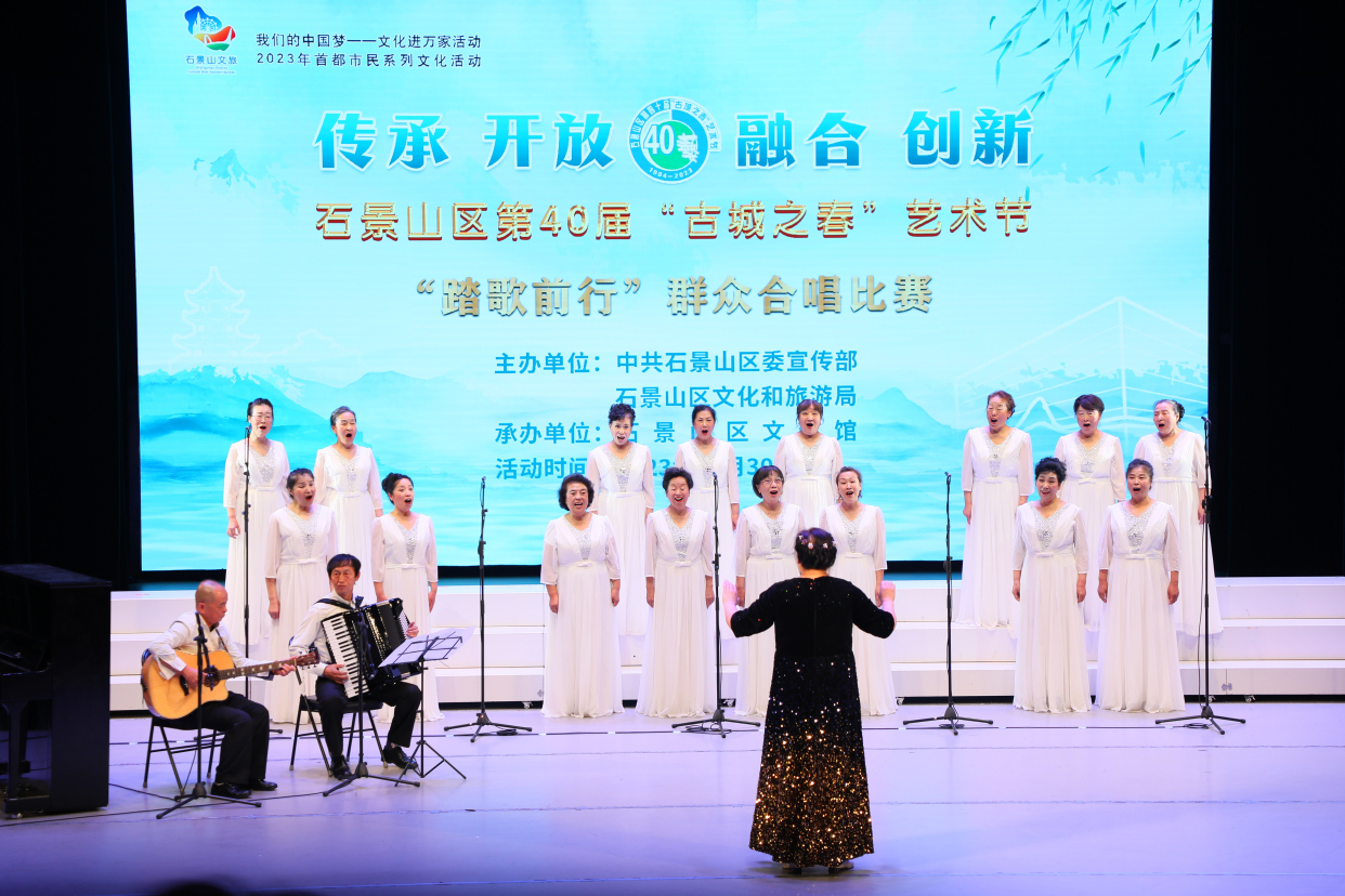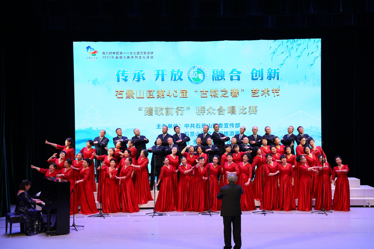 本次合唱比赛的成功举办,再一次展示了石景山区群众的音乐才华和艺术素养。2021年,中国文化馆协会合唱委员会在石景山区成立。通过近年的不懈努力,群众合唱工作一年一个新台阶,收获了众多荣誉,例如,基于首个“全国社区合唱标准化培训试点”而成立的包括北京远洋春天合唱团、古城心声合唱团等9支合唱团,使用全国统一的培训教材,常年进行系统化、科学化、标准化的“以演代训”,北京远洋春天合唱团代表石景山区参加 “聆听美好 畅响未来”2023年第十九届北京景山合唱节荣获一等奖。通过系统培训,团队演唱水平有了质的提升和飞跃,从而打造出全国社区合唱标准化培训“样板工程”,推动了石景山区文化事业的发展。
