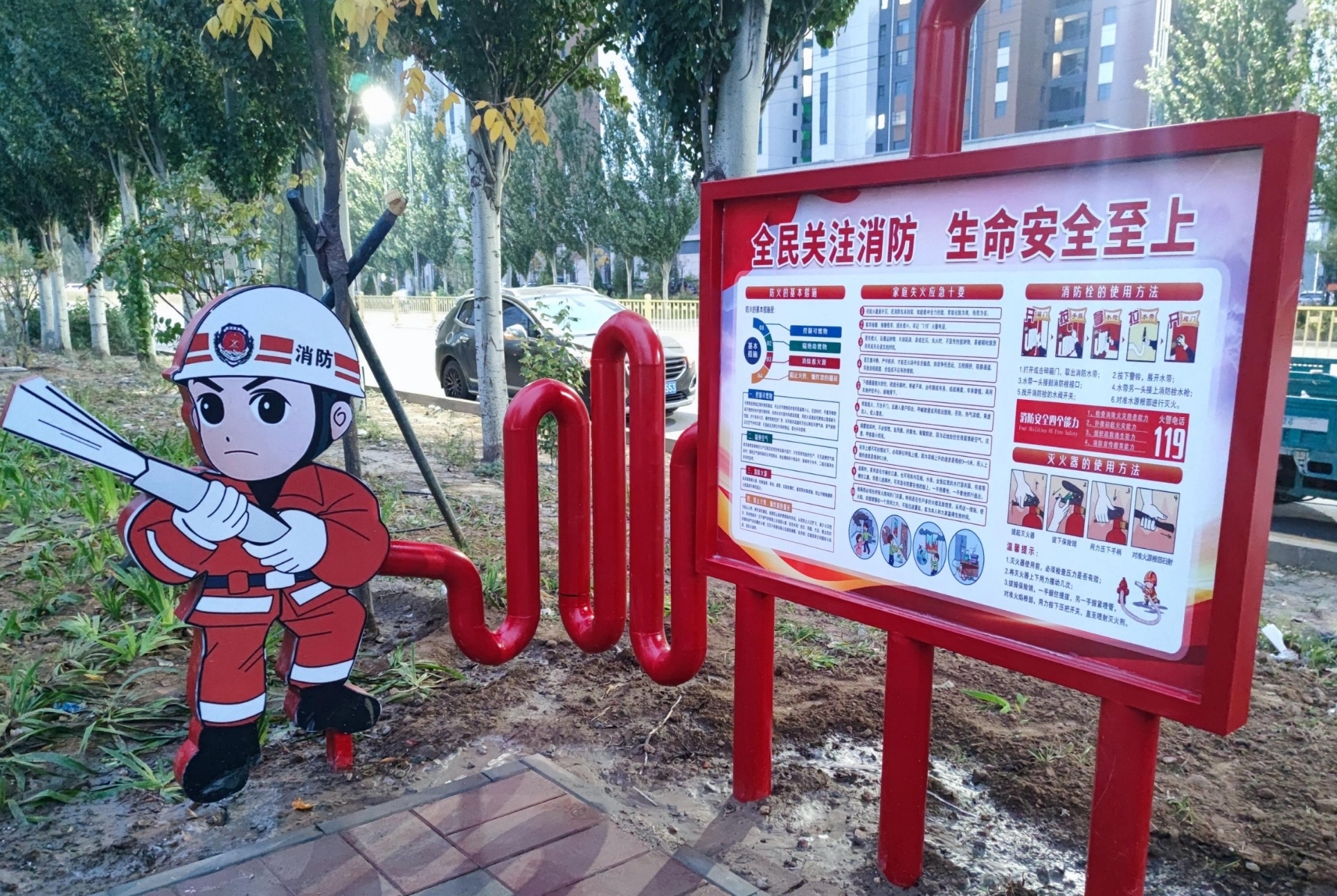 怀来县消防主题公园宣传内容浅显易懂,居民在茶余饭后、晨练等闲暇中,就能学会如何报火警,掌握防范火灾、扑救初起火灾以及如何逃生等知识。为强化怀来县应急救援队伍建设,打造安全稳定的社会环境奠定了基础。