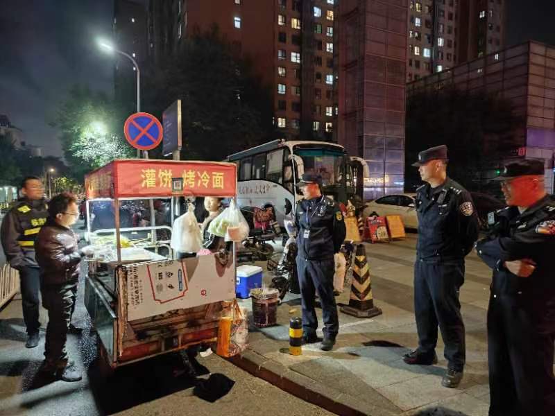 近日,昌平区城管执法局、城北街道综合执法队联合昌平治安支队、松园派出所,对万科商场周边及中国政法大学北门开展无照经营联合执法。据统计,今年以来,全区城管执法系统共开展联合执法964次,查处店外经营、乱堆物料违法行为508起,查处擅自摆摊设点违法行为3880起。