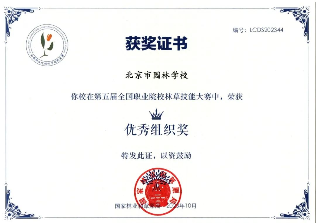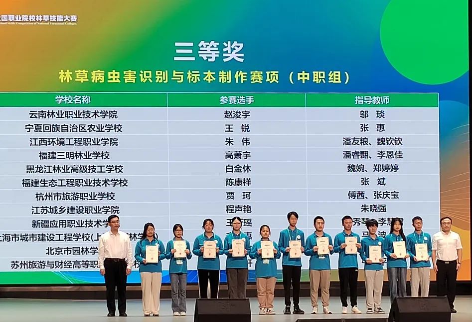 近日,第五届全国职业院校林草技能大赛落下帷幕。园林学校选手获得中职组“礼仪插花赛项”二等奖,“林草病虫害识别与标本制作赛项”三等奖,学校获得优秀组织奖。