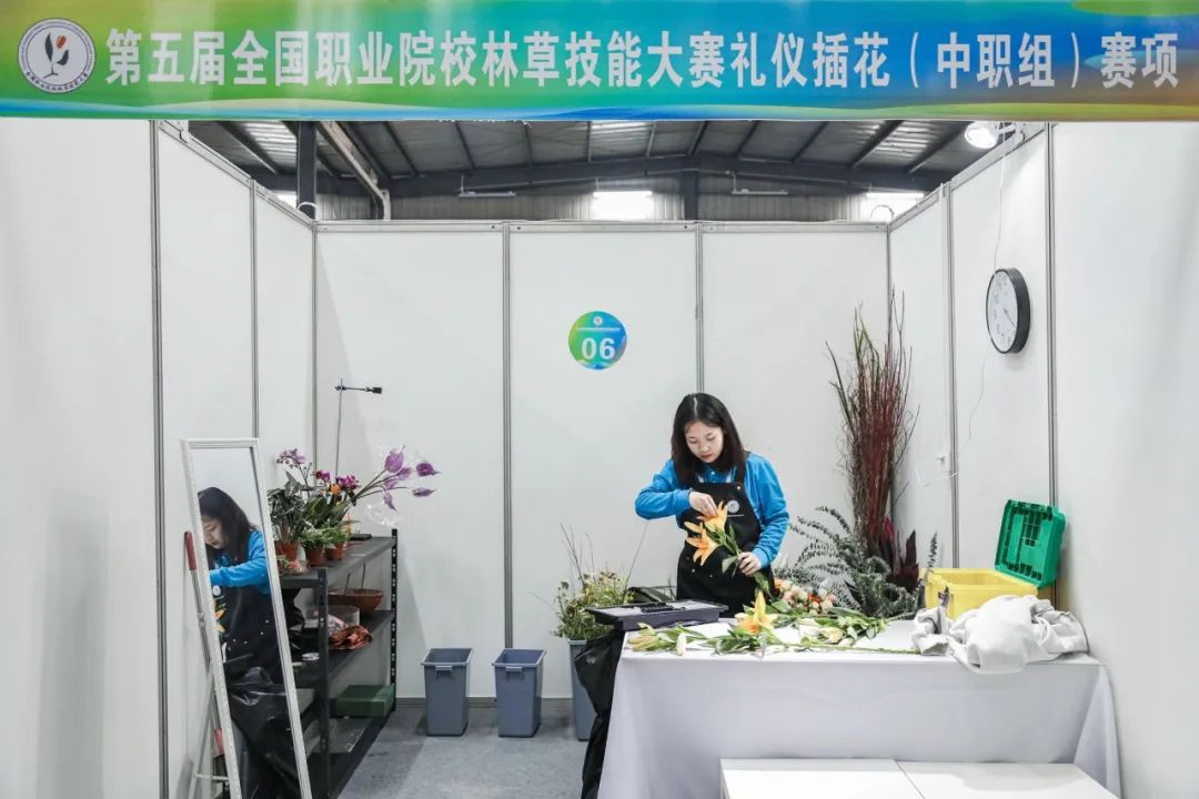 礼仪插花赛项(中职组)在湖北生态工程职业技术学院举行。该赛项共有来自全国的23支代表队参赛。比赛现场随机抽取6个模块中的3个模块进行比赛,赛项总时长为5小时。比赛考察学生的设计创意、技术技巧、色彩搭配等花艺设计与制作综合能力。