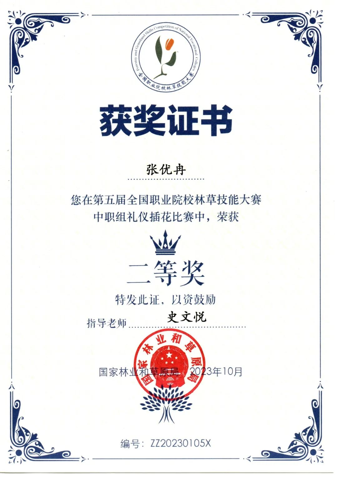 学校园林技术专业2022级3班学生徐欣妍代表学校参加了该赛项,最终荣获三等奖。