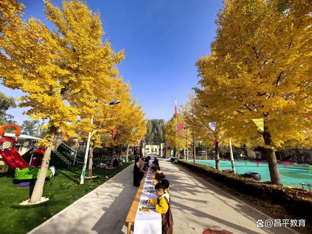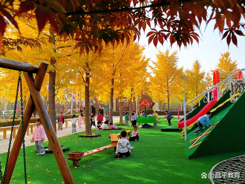 当金黄爬上银杏树梢,草坪镀上了琥珀色的滤镜,一草一木皆如画,小朋友们在树下游戏、画画,对呀,我和秋天就是朋友啊!