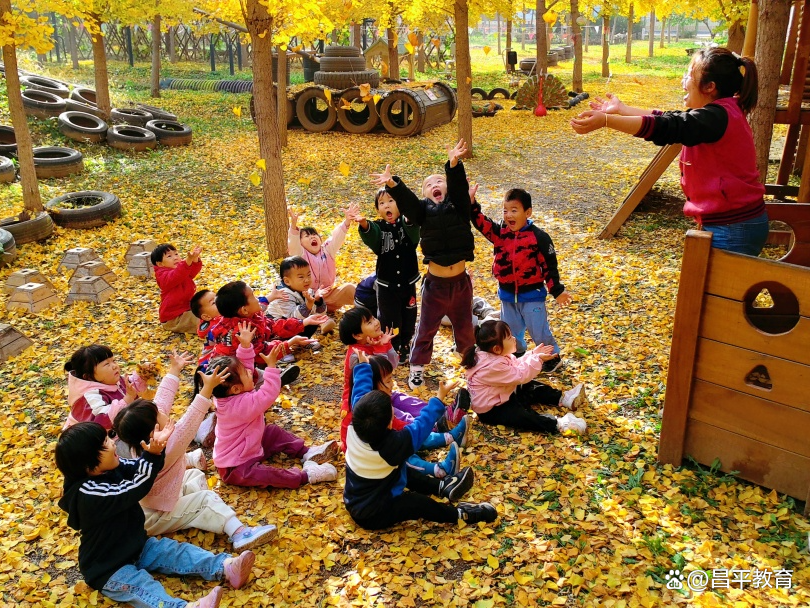 秋风不燥,岁月静好。孩子们像一只只欢乐的小鸟,游戏在树林间,感受金秋带来的欢畅。