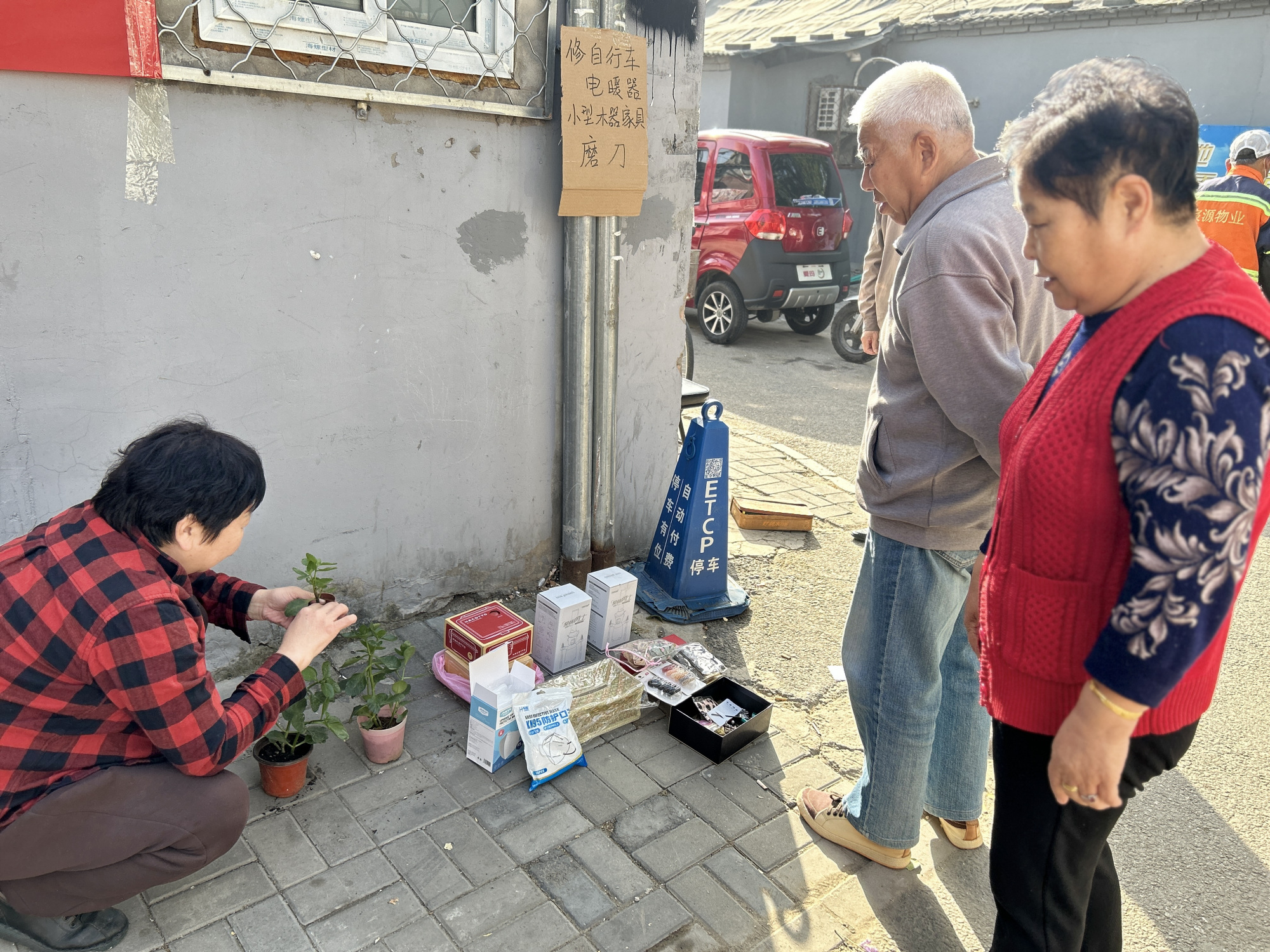 10月25日,西园子社区“春沐西园”环境治理服务开展第一次“跳蚤市场”活动。活动现场居民们自觉铺好摊布、按规则摆放物品,原本安静的胡同迅速被各摊主“百花齐放”的摊位填满。居民信心满满,带着灿烂的笑容,向路过的“客人”推销自己的商品,讨价还价声不绝于耳,好一派热闹欢快的景象。胡同一头,社区志愿服务队积极参与其中,为居民提供免费修车服务、为高龄老人义务理发,受到居民的一致好评。后续根据服务方案定期开展“跳蚤市场”活动,逐步提升胡同环境。